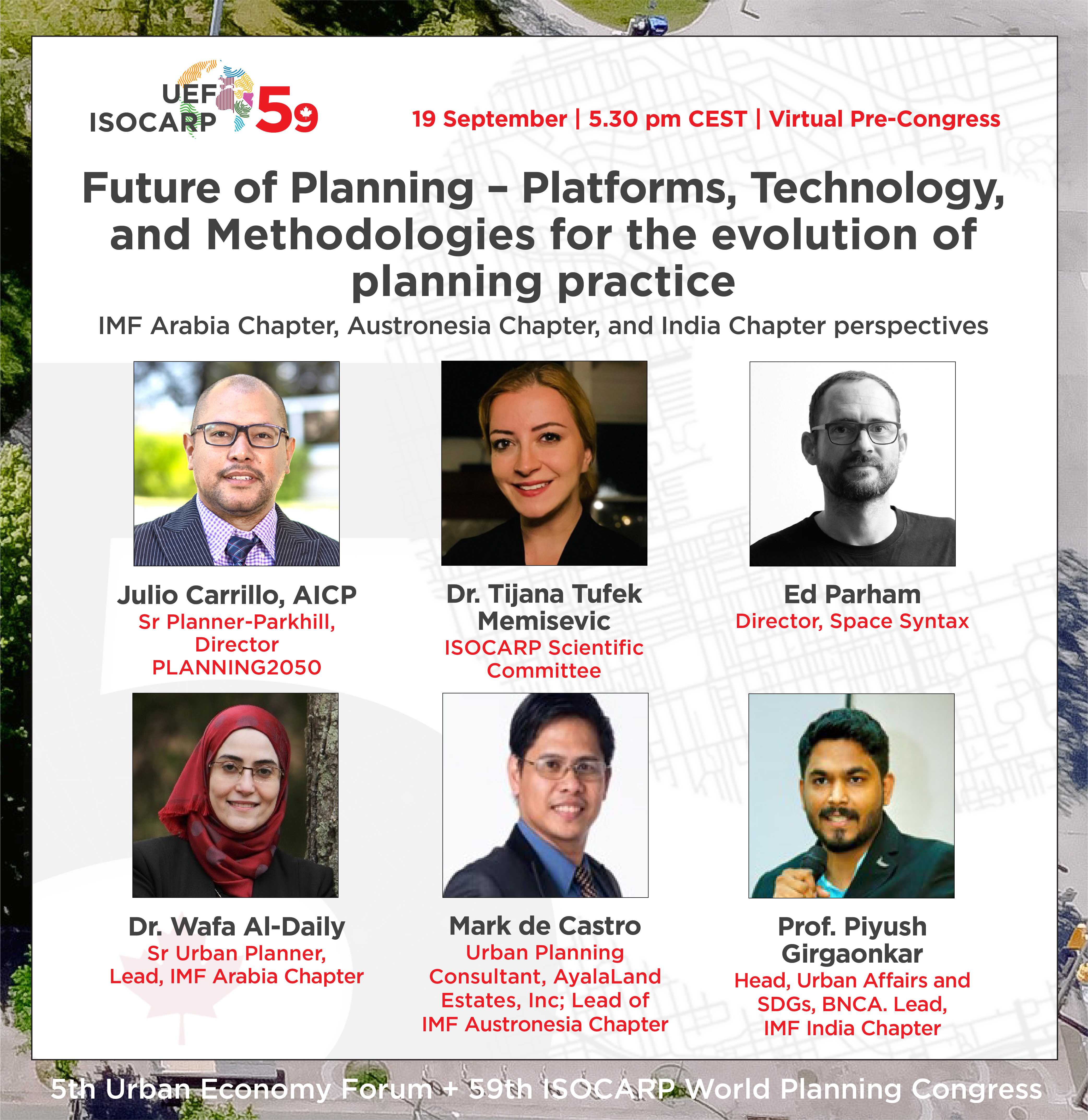 Planners are beginning to understand the interconnectedness of systems. Future planning practice will link databases of multiple systems and dimensions to provide relevant solutions. The panellists in this session will discuss how technologies and methodologies are helping cities and communities to plan effectively while addressing connection between systems. When planning big metropoli, the connections between systems are essential to the understanding and long-range success of planning practice. We will hear from practitioners that are bringing together world-class analysis at large scales with big data behind. We will also hear from researchers and academics (from diverse parts of the world) on ways technology are being introduced into planning practice.